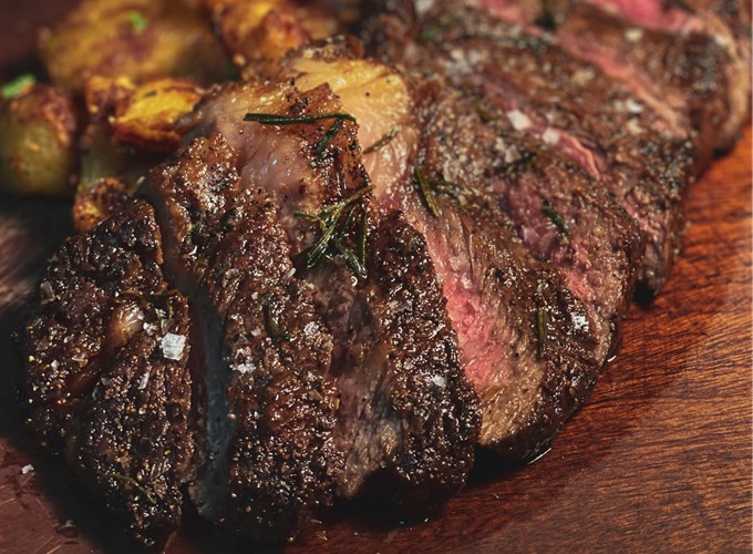 anschließend belohnt mit saftigem, butterzartem Fleisch.