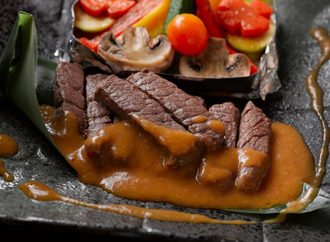 Saftiges Steak trifft auf exotische Würze und küsst den Gaumen wach. Die Röstaromen beim Braten und Grillen verbinden sich mit der cremigen, nussigen Tiefe und feinen Schärfe der raffinierten Sauce; sie ist der heimliche Star dieses Rezeptes von Kevin Sorgiovanni.