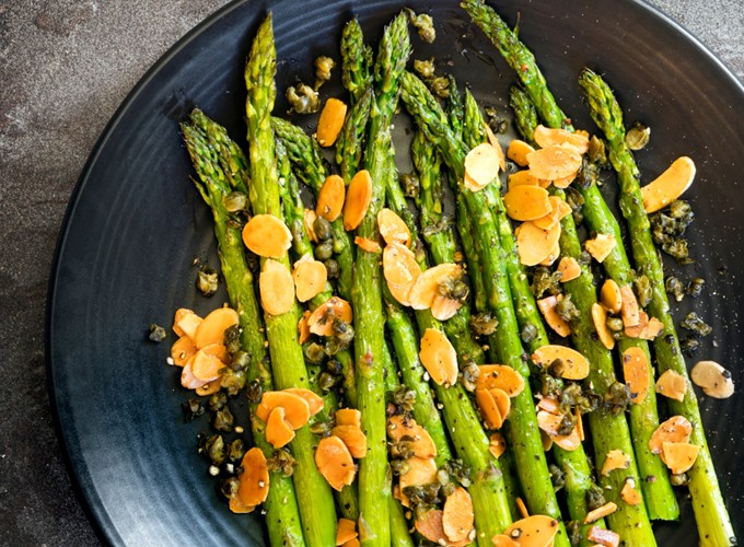 Grüner Spargel mit gerösteten Kapern & Mandeln